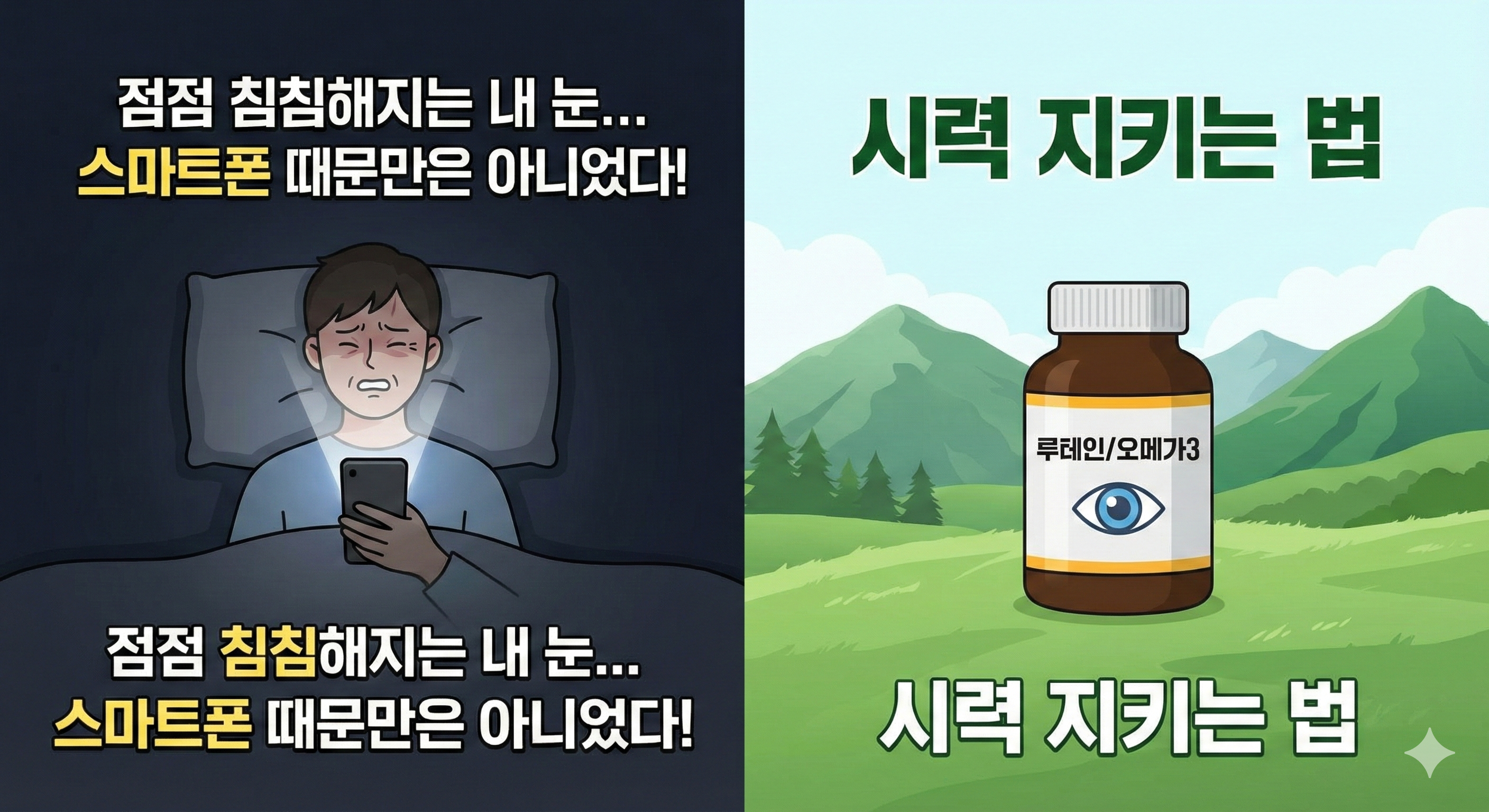 • [ ] 루테인/오메가3 챙겨 먹기: 눈 건강에 필수적인 영양소 보충